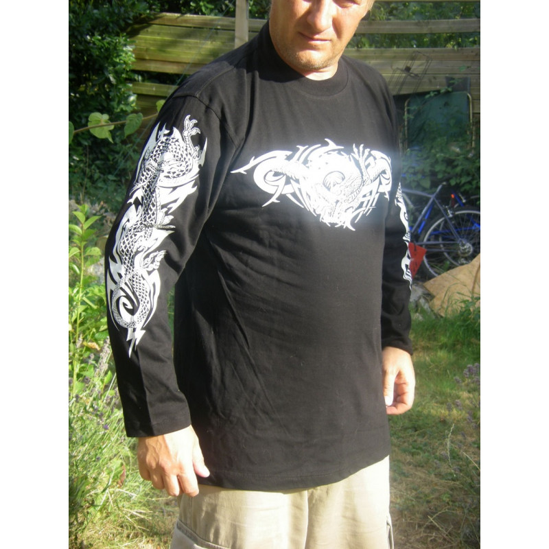 T-shirt manches longues dragon chinois yin yang recto/verso